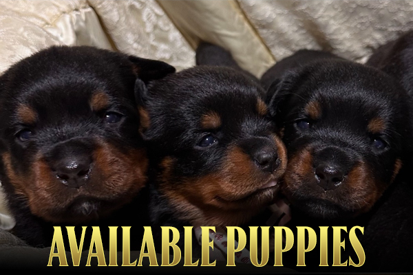 All of our Rottweilers are put through a thorough health testing scheme starting at 12 months old until they pass hips and elbows at 2 years old, prior to becoming part of our breeding program. We believe in only breeding Rottweilers who are sound in temperament, substantial in bone, intelligent in mind, healthy in genetics, and imposing in appearance with the powerful head type, which is the most iconic trait of the Rottweiler breed.