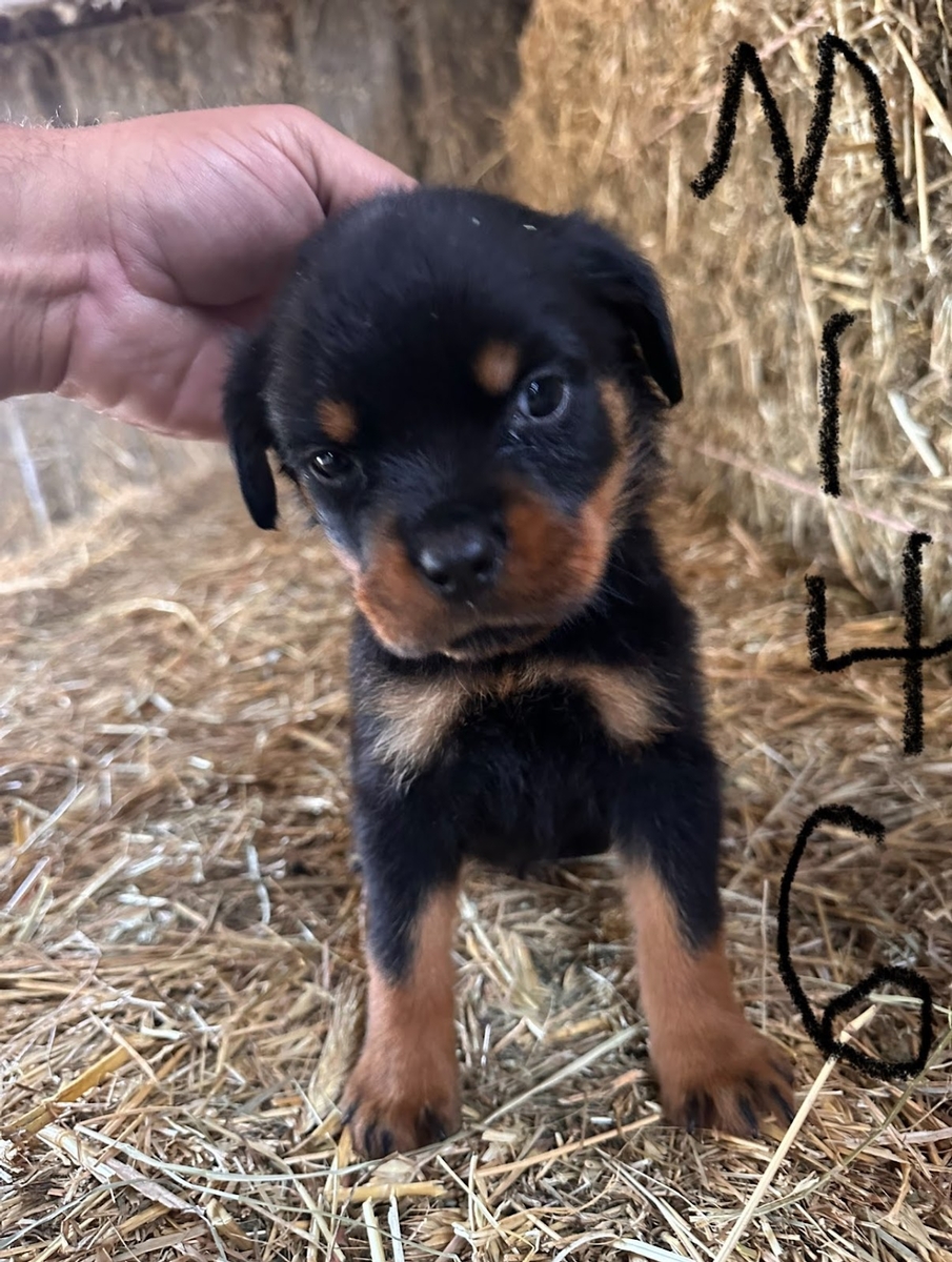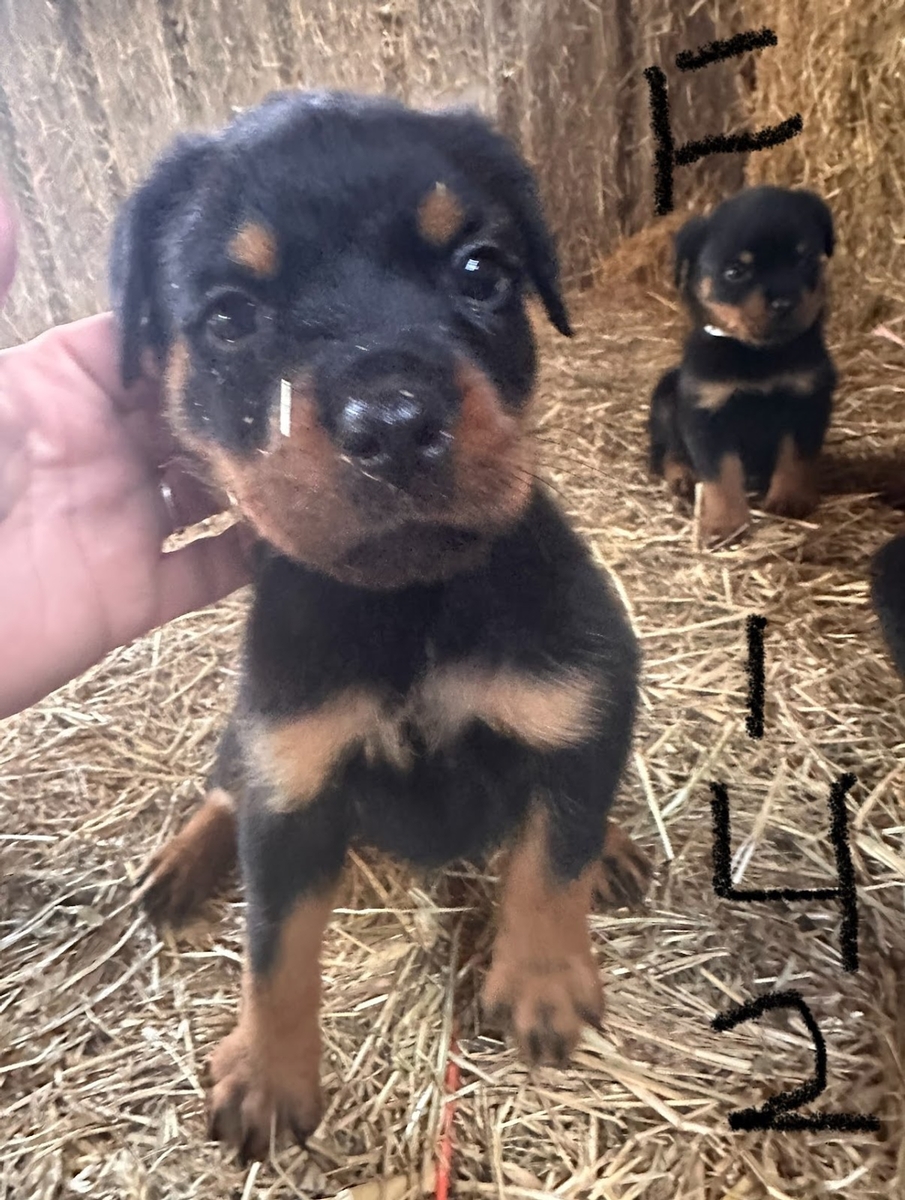 If you decide to join our Rottweiler family, you will receive a puppy that is microchipped with a pamphlet to register your microchip to the national database, and a folder that will contain your puppy's shot records and any notes from the vet. So if your puppy is lost or stolen and even picked up by animal control, and they scan the microchip, it will come back with your name, address, and contact information so that you can be reunited with your puppy. You will also receive a gallon Ziploc baggie full of the dog food that your puppy has gotten used to eating. You can use this dog food to blend with whatever you are going to feed it to make the transition easier, or you can just pick up a bag of what we have been feeding and go from there.